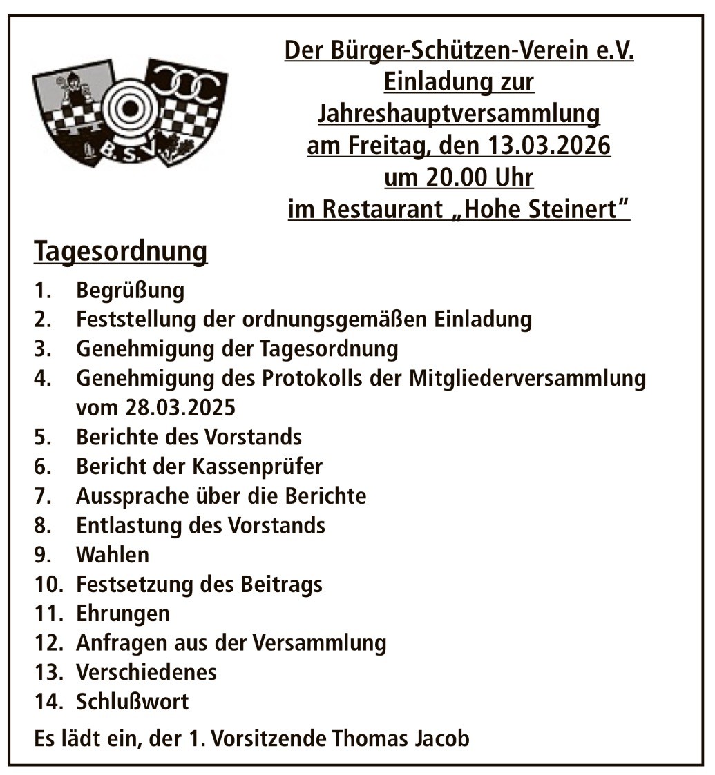 Herzlich willkommen beim Bürger-Schützen-Verein e.V. Lüdenscheid!